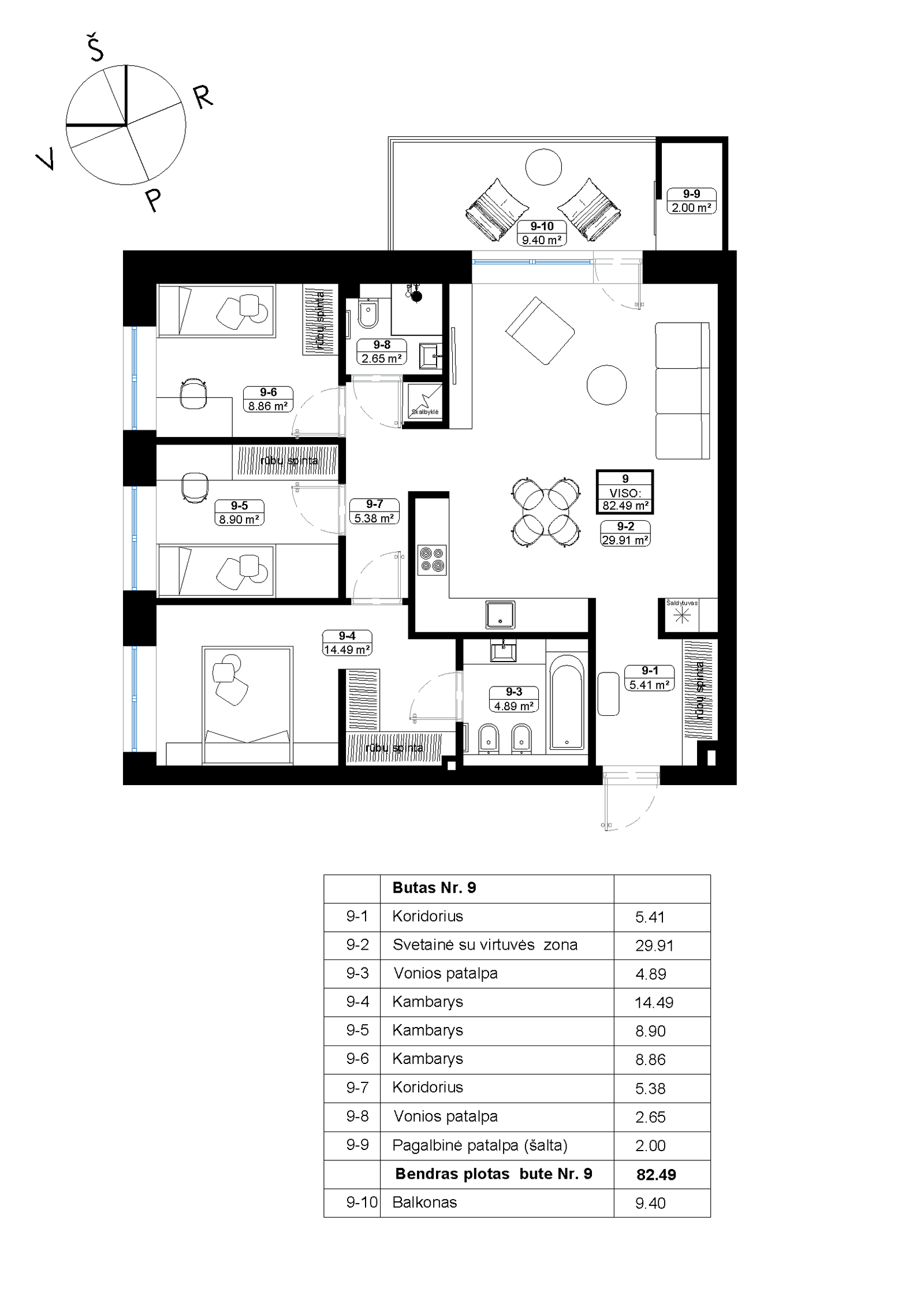 3 namas / 9 butas