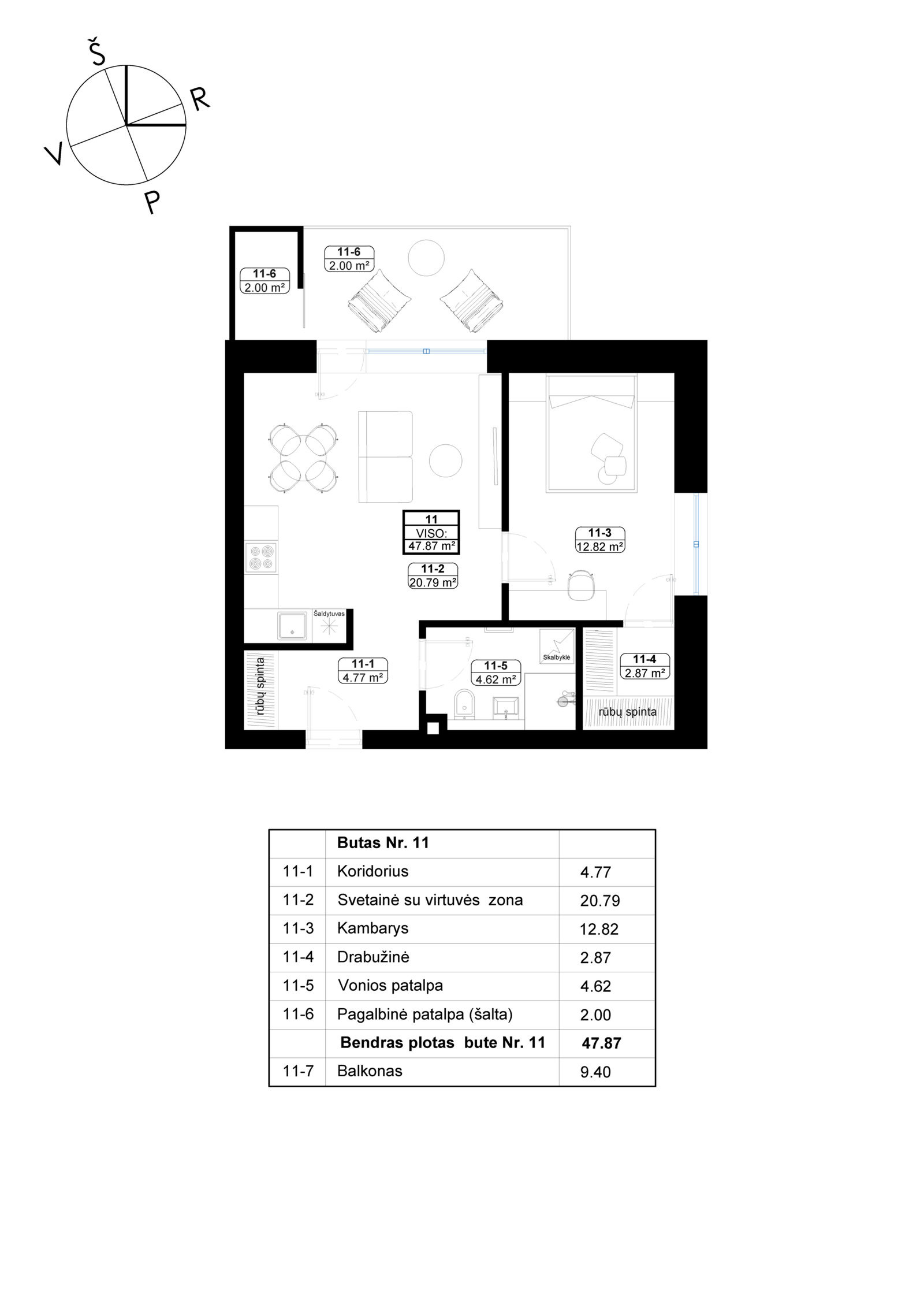 Buto plotas, m2 47,87